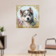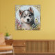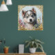 Utformning av Siberian husky med stor vattenfärg med gult, röda och vita blommor och vintage guld ram