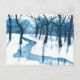 Vattenfärgslandskap, träd och flod, snöfall helg vykort