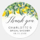 Med Watercolor Lemon Möhippa Classic Round Sticker, som har elegant calligraphy och pulserande vattenfärgscitroner i gult och grönt, får du en ljuskänslig pektyr till dina favoriter. Perfekt för en vår eller sommarens "huvudklämning" temat möhippa, detta klistermärke är ett charmerande sätt att tacka dina gäster med ett citrusinspirerat lukt!