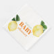 De här anpassningsbar babyduschservetterna har ett citrustema. Två vattenfärgscitroner placeras i den övre högerna och ytterligare en citron i grund lämnas. Rubriken "Baby Shower" trycks i en levande orange färg, med ett exempel på namn tryckt i en kalkgrön färg. Du kan anpassa blöjorna så att de innehåller ditt eget namn eller egen text.