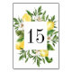 Vattenfärgslemoner och Blommar Sommar Bröllop Bordsnummer
