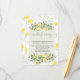 Vattenfärgscitroner och blommor på vit bakgrund.