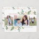 Den här fina vykorten för semesterfirande har en vacker ram med botaniska motiv i akvarell och hälsningen "GLAD". Hälsningen på framsidan är helt anpassningsbar så att du kan ändra den till vad du vill. Designen är enkel men elegant. På framsidan av kortet finns plats för tre foton (två vertikala och en horisontell). På baksidan ser du ett vackert koordinerande mönster med akvarellbladverk. Du kan anpassa baksidan ytterligare genom att ta bort mönstret och lägga till ett annat foto och/eller text genom att välja "Anpassa denna design ytterligare" längst ned i rullgardinsmenyn " Anpassa".