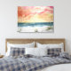 sjölandskapets vattenfärgsmålning i stranden, färgsduk, moderna vattenfärger kusten rosa orange gult himlar himlar konstmålningar bild fotoillustration botaniska dekorativa avtryck födelsedagspresent för läkare på hotell till doktor företag