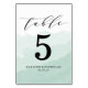 Elegant bröllop bord-kort med myntvattenfärg tvättar bakgrund med ett handskrivet kalligrafteckensnitt. Anpassa korten för bordsnummer av snyggt med ditt namn och bröllop-datum för anpassningsbarnas utseende.