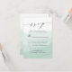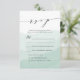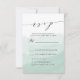 Svarskort från eleganten Watercolor Mist bröllop har en myntvattenfärg som tvättar bakgrund med ett handskrivet kalligrafteckensnitt. Anpassa bröllopen OSA för chic med information om bröllop och middagsalternativ.