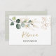 Ett platta platta platta kort för elegant med en illustration av grönt och guld i vattenfärgen stil. I den här designen kan du ta bort exempeltexten (tomt kort). Då måste man skriva namn för hand.