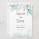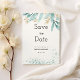 Vattenskärtvit, myntvit grönt och inbjudningar till guld foliage Bröllop spara datum. Den här botaniska handdragna inbjudan till blommigt löv är perfekt för alla klassofistikerade och sofistikerade snyggtar eller någon annan. Den här designen är perfekt för en händelse i trendig och snyggt party. Anpassa den här designen med egen information om meddelande och personlig. Alla designer skrivs ut.