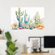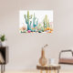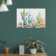 Denna fantastiska poster fångar upp det vackra i ett ökenlandskap som återges i det känsliga och flytande mediet av vattenfärg. Konstnären använder skickligt en palett med mjuka gröntar, blues, pinkar och tanker, som frammanar den lugn och mystiska atmosfären i öknen vid gryningen. Gröntens övergångar antyder sällsyntet men motståndskraftig vegetation som prickar sandexpansionen, medan blues och pinks målar en himlar som går över från coolan före gryningen till det varma omslaget på morgonen sol. De bruna hugerna i biet, som representerar de ändlösa sanden som definierar öknens innersta väsen. Denna konstverkstittare i inbjudan går in i en fredlig, nästan eterisk värld, där naturens fasthet och skönheten hos dess subtila färg talar direkt till själen. Perfekt för att ge lugn och inspiration till vilket område som helst, detta poster är ett bevis på konstnärens förmåga att fånga öknens stora enkelhet genom de mjuka och flytande uttrycken av vattenfärg.