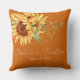 Vattenfärgsolblommor på bränd Orange Kudde
