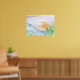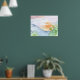 Vattenfärgsolnedgång över bergen och Träd Poster