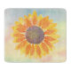 Denna rustiska avskärningspanel dekoreras med en solrosa i gult på en vattenfärgsbakgrund. Ursprunglig vattenfärg © Michele Davies.