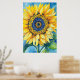 Vattenfärgsolrosor på en Himmel blå bakgrund Poster