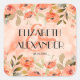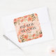VattenfärgsOrange Blommigt Bröllop Fyrkantigt Klistermärke