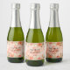 Elegant orange vattenfärgsblommor och elegant löv framhäver dessa personlig mini mousserande vin flaska-märken. Vacker för på din bröllopsmottagning, repetitionsmiddag, möhippa eller ge som party favors. MATCHING-objekt i vår butik.