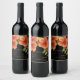 VattenfärgsOrange Blommigt Bröllop Tack Vinflaska Etikett