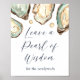 Den här texten som kan användas vid kusten innehåller mjuk kräm och vattenfärgsostron och pärlillustrationer, med "lämna ett klokhetens pärla för nylingarna" i klassiskt marint blått skript och blockering. Perfekt för strandtemat, sommar eller nautiska bröllop kan detta tecken placeras bredvid ett bok eller en grupp kort för gäster för att deras bästa råd för paret.