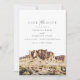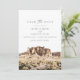 Det här sparar datumet med en vattenfärgsmålning av Superstition Mountains nära Phoenix, Arizona. Redigera enkelt *de flesta formuleringar för att uppfylla dina behov och lägg till egna foton på baksidan med din bröllop-webbplats.