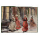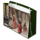 Julklappspåse med vintage vattenfärg-illustration av ett vinterlandskap med viktorianska damer som handlar och njuter av julens myller och trängsel.