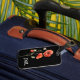 Snyggtens bagagetapp med röda påsar med vattenfärg på svart bakgrund. Anpassa med namn eller monogram
