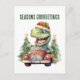 Vattenfärgsinosaur julbils Helgdag Postkort