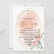 Elegantens moderna vattenfärgsflicka Baptisminbjudan med trendig guld geometrisk ram, vattenfärgsbakgrund och persikoblomma arrangemangare. Klicka på Anpassa ytterligare om du vill redigera mallen.