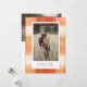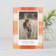 En rustik helgdag-kortdesign för festive-elegant som har en färgstark vattenfärgad bakgrund i röda, Beige och Orange med rum med personligt foto (lodrät eller porträtt). "varmaste önskemål" eller ditt val av hälsning visas under fotot, tillsammans med din familj namn och året. På baksidan finns ett utrymme för ytterligare foto (vågrät- eller liggande orientering) och ett personligt meddelande