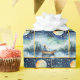 En liten pojke som fiskar i en rowboat nattetid under stjärnor och fullt