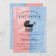 En inbjudan till Big Reveal Baby Shower med vattenfärgsbakgrund i rosa och blå och en vintage snyggt baby. Vår mall för barnduschinbjudan är enkel att anpassa med information om din barndusch i firande.