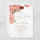 Fin vattenfärgad Blommigt Peach-inbjudan med Guld och burgundi. Den har en samordnande bakgrund och gör att perfekt babydusch bjuds in till mamma.