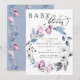 Vattenfärgsprogram för Rosa och Blåa blommor Babyk Inbjudningar