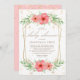 Elegant Baby Shower-inbjudan med Söt Rosa & Ivory Watercolor Grey Blommigt, Geometric Guld Ram & Splatter of Guld Specks.