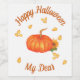 Vattenfärgspumpa hand plockade orange med lycklig- och solrosetikett Hallowen Vin. Matchande artiklar tillgängliga