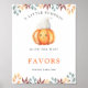 "En liten pumpa är på väg. Fira med den här tecknaden i baby, pumpa temat för babyduschen party! Vattenfärgssöt tecknad kawaii-pumpa med hösthatt (hatt) och höst löv. På baksidan av kortet finns höst löv.