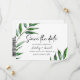 Modern och elegant sparar datumkortet med en vattenfärg som lämnar och dina bröllop-detaljer i modernt teckensnitt.Kortet kan enkelt anpassas för alla händelser genom att du lägger till din händelseinformation, teckensnittet stil, teckensnittet storlek & färg och den text du väljer genom att klicka på knappen Anpassa. Lägg till ditt favoritfoto längst bak på kortet.