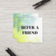 Med det här snyggt blandade hänskjutningskortet för vattenfärger får du en aning färg och lugn till klienten. Med mjuka gröntar, blåsor och gulter är det balansen mellan perfekt och professionalism i stil. Uppmuntra hänskjutanden och tacka dina klienter med 15 % rabatt för både remitteraren och deras vän. Perfekt för salonger, kurorter eller självbetjäningsföretag som värderar estetik och lojalitet.