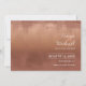 Detta moderna bröllop spara datum-kort är något inofficiellt med varm, personlig känsla och har en abstrakt, vattenfärgsdesign som liknar reflektioner på vatten. I det här exemplet finns en övertoningspalett från blek peach till mörk terra cotta. Anpassa med briden och gruppens namn, bröllop-datum och detaljer med hjälp av den angivna mallen. Sök i ID774 om du vill se fullständiga matchningsuppsättningar och ytterligare alternativ för färg.