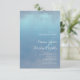 Den här moderna middagsinbjudan från bröllop har en varm, personlig känsla och har en abstrakt, en vattenfärgsdesign som liknar reflektioner på vatten. I det här exemplet finns en övertoningspalett färg från mjuk teal till dammblått trendig. Anpassa med briden och gruppens namn- och händelseinformation med hjälp av den angivna mallen. Sök i ID774 om du vill se fullständiga matchningsuppsättningar och ytterligare alternativ för färg.