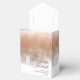 Denna moderna "Tack"-favoritruta i bröllop har en varm, personlig känsla och har en abstrakt, en vattenfärgsdesign som liknar reflektioner på vatten. I det här exemplet finns en övertoningspalett från blek peach till mörk terra cotta. Anpassa med namnen för bruden och brudgummen och ett personligt tackmeddelande med hjälp av den angivna mallen. Sök i ID774 om du vill se fullständiga matchningsuppsättningar och ytterligare alternativ för färg.