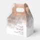 Denna moderna "Tack"-favoritruta i bröllop har en varm, personlig känsla och har en abstrakt, en vattenfärgsdesign som liknar reflektioner på vatten. I det här exemplet finns en övertoningspalett från blek peach till mörk terra cotta. Anpassa med namnen för bruden och brudgummen och ett personligt tackmeddelande med hjälp av den angivna mallen. Sök i ID774 om du vill se fullständiga matchningsuppsättningar och ytterligare alternativ för färg.
