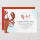 Den här designen har en modern enkel möhippa, en enkel kuströd hummerfisk, med en QR-kod för webbplats online Facebook social medie-URL-länk, med en nautisk lobster bil bake party, kustlevande hav i havet vid havs, semesterinbjudan till sjömaten i party, en snyggt trendig typografi med modern kalligrafi, en maryland new England Maine-kusten ben, med grönhummer vatten bil bake och blått vågar havsområde