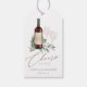 De här elegant vin-smakarna med favorittaggar är den perfekt som avslutar beröring för möhippor, förlovningsfester eller semestermålare som är värdar vid ett vineri, smaksättningsrum eller vinodling. Konstruktionen har flaska av burgundrött vin och två vin-glas och är försedd med grönt vattenfärgad eukalyptus löv och löv. "Cheers to Kärlek" visas i chicens calligraphy script lettering. Anpassa märkningen vin flaska med parets initialer och lägg till namn och bröllop eller händelsemedatum.