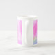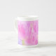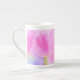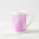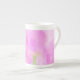 En mjuk och feminin benvävnad china mugg med en vattenfärgsmålning av rosa tulpaner.