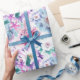 Vattenfärgsrosa, blåa blommor. presentpapper