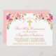 Elegant Watercolor Rosa Blommigt Första Heligan Kommuniation omfattar rosa ros och grönt löv. Guld Kor.