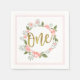 VattenfärgsRosa Blommigt Guld 1 första födelsedag Pappersservett