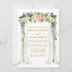 Modern Elegant Watercolor Rosa Blommigt och inbjudan till Guld bröllop omfattar rosa ros, vita blommor och botaniskt grönt på en kanopi.