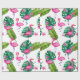 VattenfärgsRosa Flamingo Tropical Löv Mönster Presentpapper