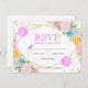 Den vackra vattenfärgens Rosa, Gult och Blå sommarblommor med guld-geometriska ram, konetti från guld glitter och rand-bakgrund