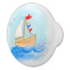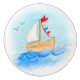 Skruva upp barn eller daghem med dessa stiliserade vattenfärgade segelbåtar av trä med blått och rött flaggor-konst-knappar. Watercolor art och design av Sarah Trett.